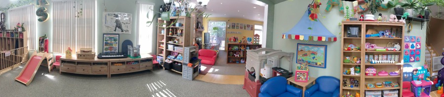 Indoor play area is filled with many toys that promote imagination and development of both gross and fine motor skills.